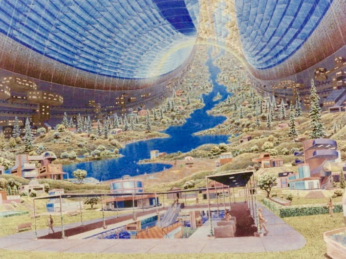The images in this issue feature artistic renderings of space colony concepts that were made in the 1970s when the Princeton physicist Gerard O’Neill held a series of studies exploring the possibilities of humans living in giant orbiting spaceships. You can find it all here.